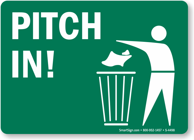 Use a "pitch in! (with graphic)" sign. Signs work - and they never stop working.