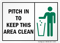 Trash Litter Sign: Pitch In To Keep This Area Clean (with graphic) S-4272