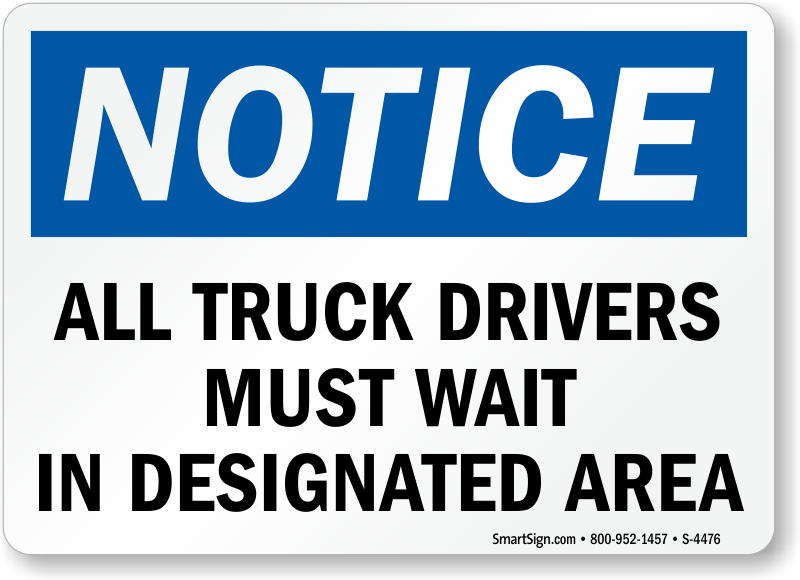 OSHA Notice Sign: All Truck Drivers Must Wait In Designated Area S-4476