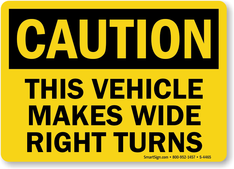 Send a bold and powerful message. Use a "this vehicle makes wide right turns" sign.