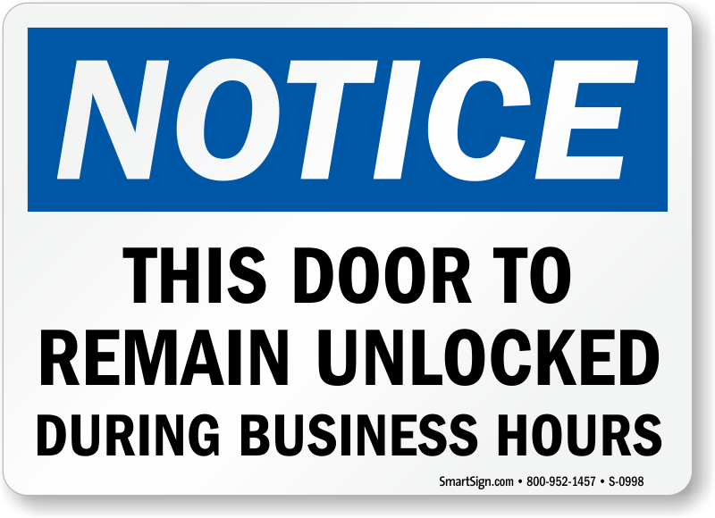Don't let safety standards fall. Use a "this door to remain unlocked during business hours" sign. Proven and effective.