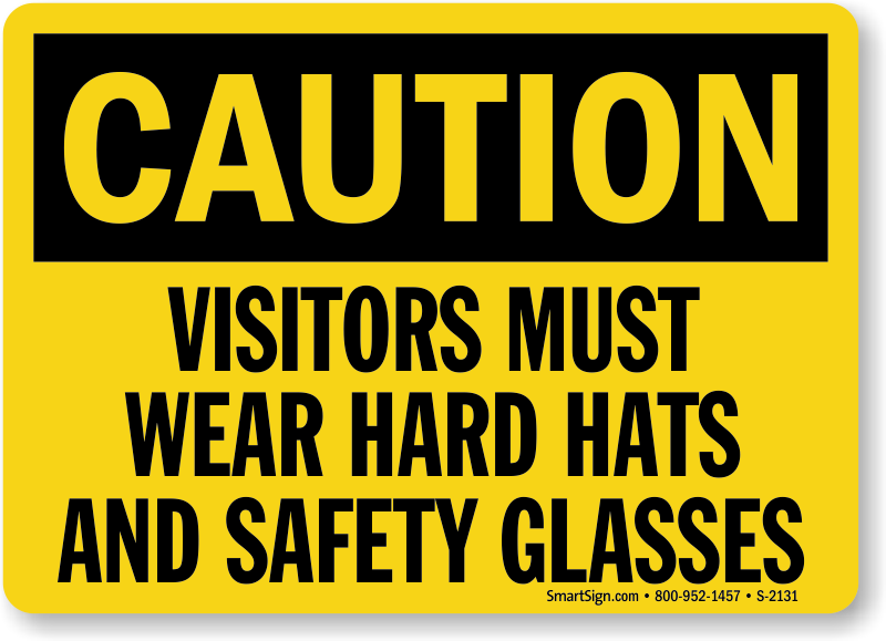 Use a "visitors must wear hard hats and safety glasses" sign.