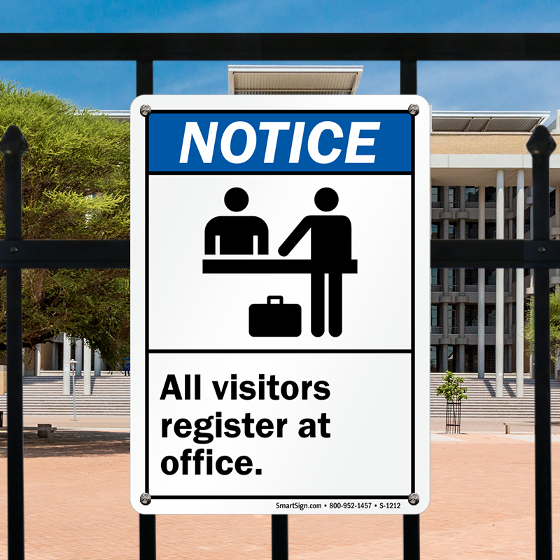 Notice Signs send an important message. Post an 'All visitors register at office" sign to manage your visitor traffic and prevent confusion.