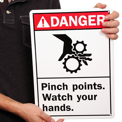 ANSI Danger Sign: Pinch Points Watch Your Hands (with Graphic) Learn More...