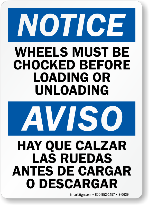 Make the safety policy clear. Use a "wheels must be chocked before loading or unloading (bilingual)" sign.