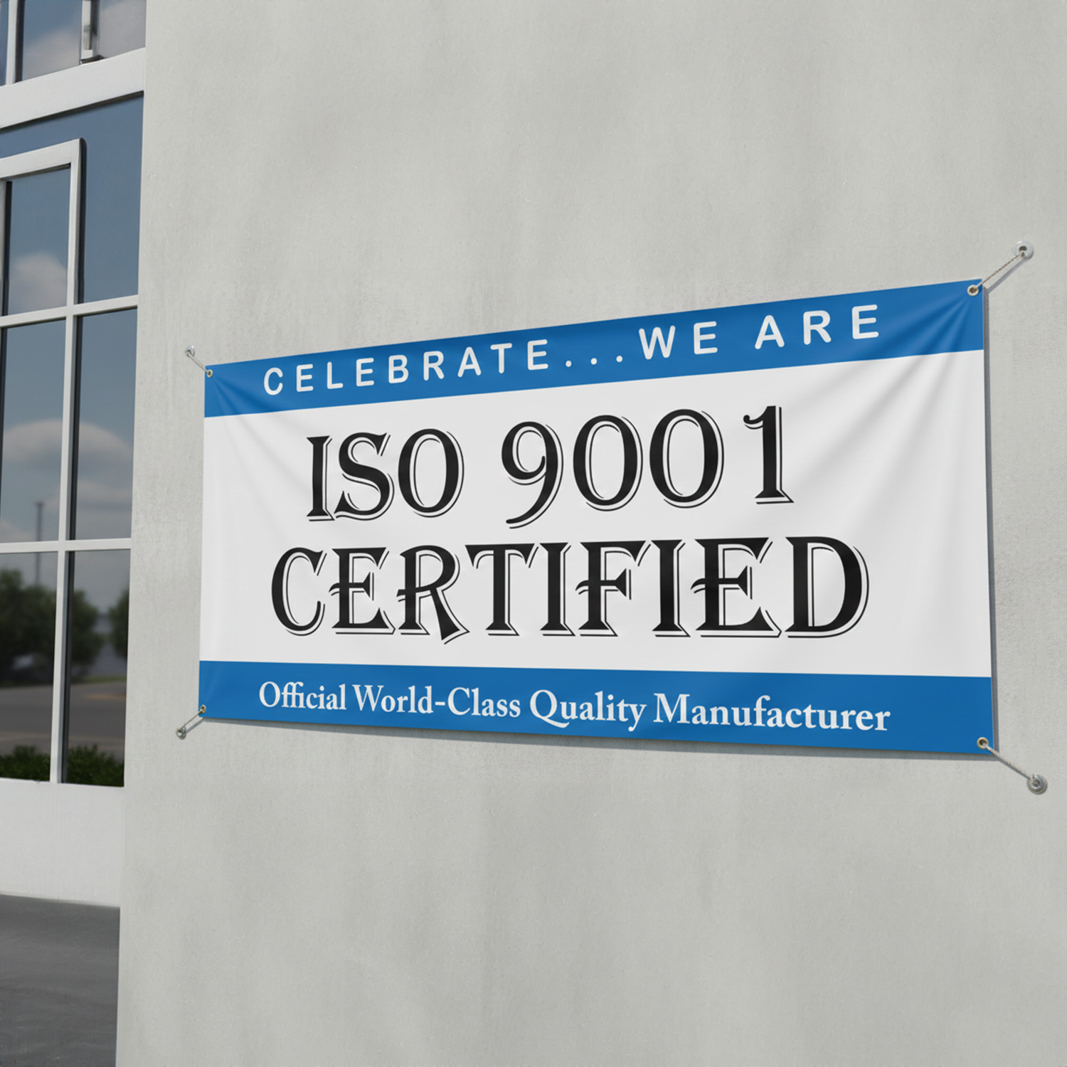 Safety Banner: Celebrate We Are ISO 9001 Certified B-0384