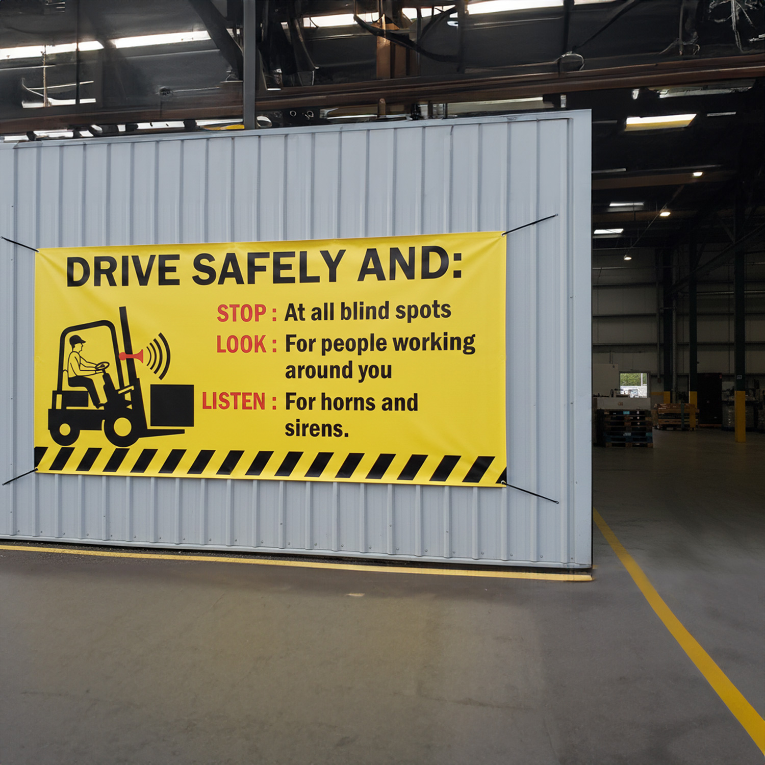 Safety Banner: Drive Safely and Stop Look Listen B-0386
