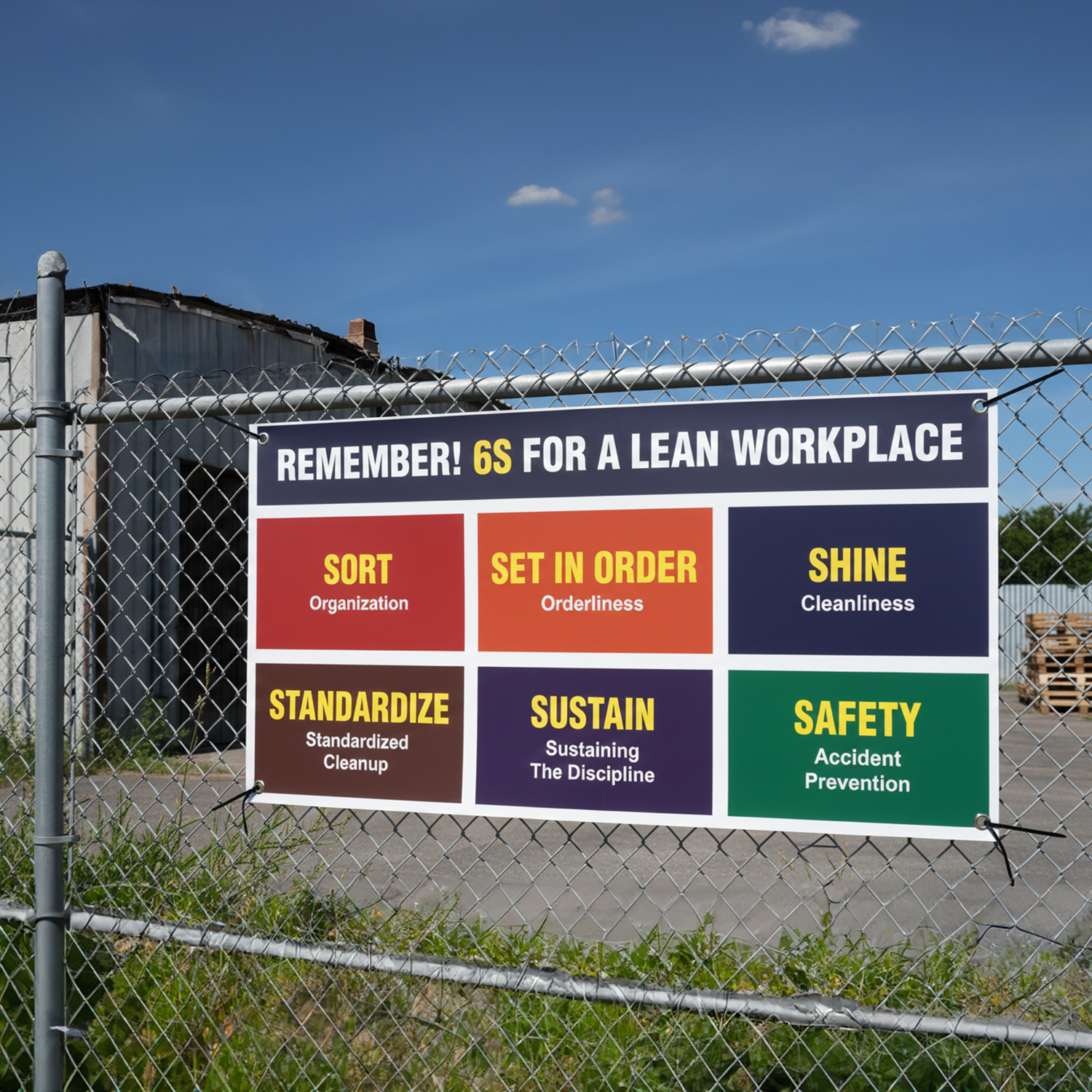 Safety Banner: Remember 6S for a Lean Workplace B-0394