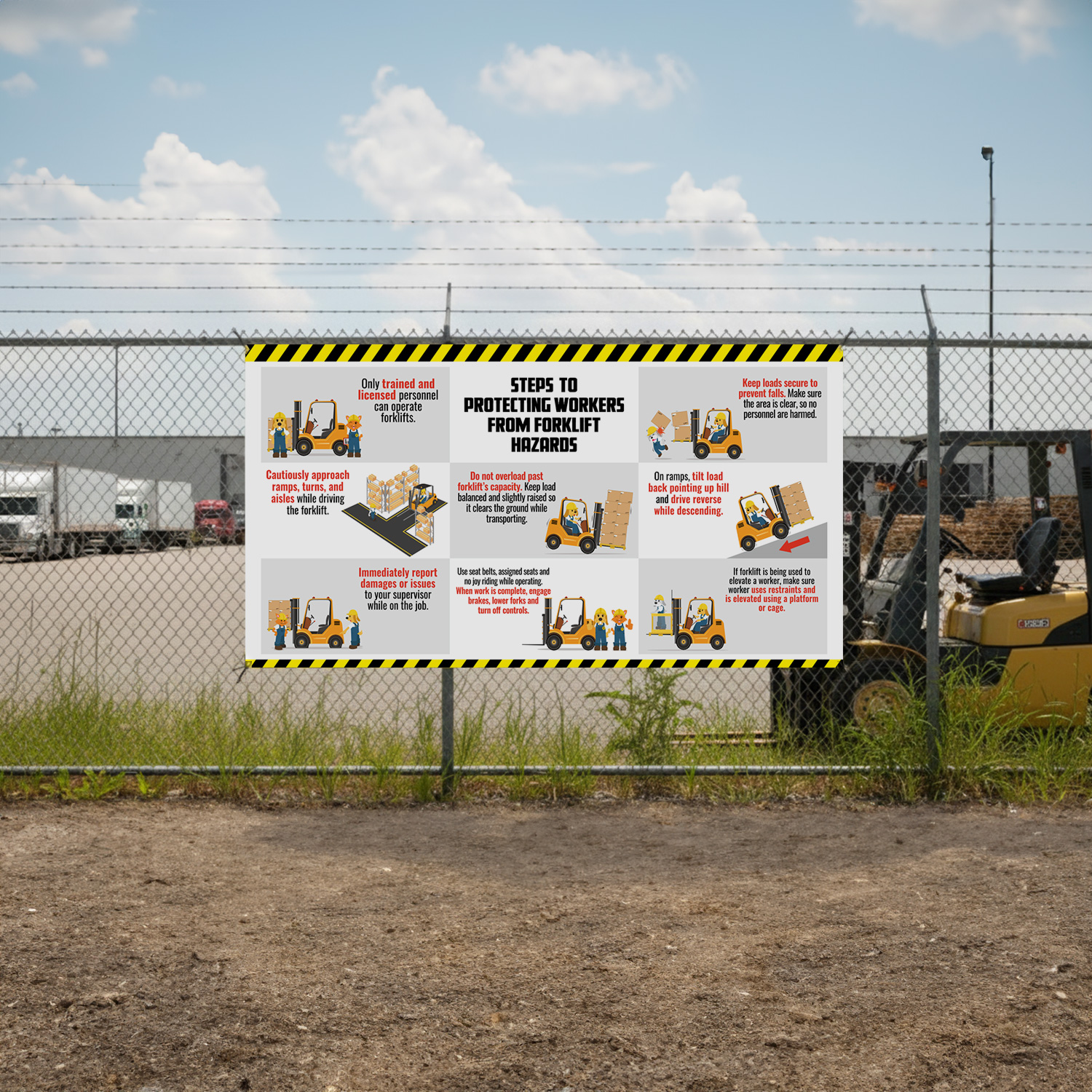 Safety Banner: Steps to Protecting Workers from Forklift Hazards B-0409
