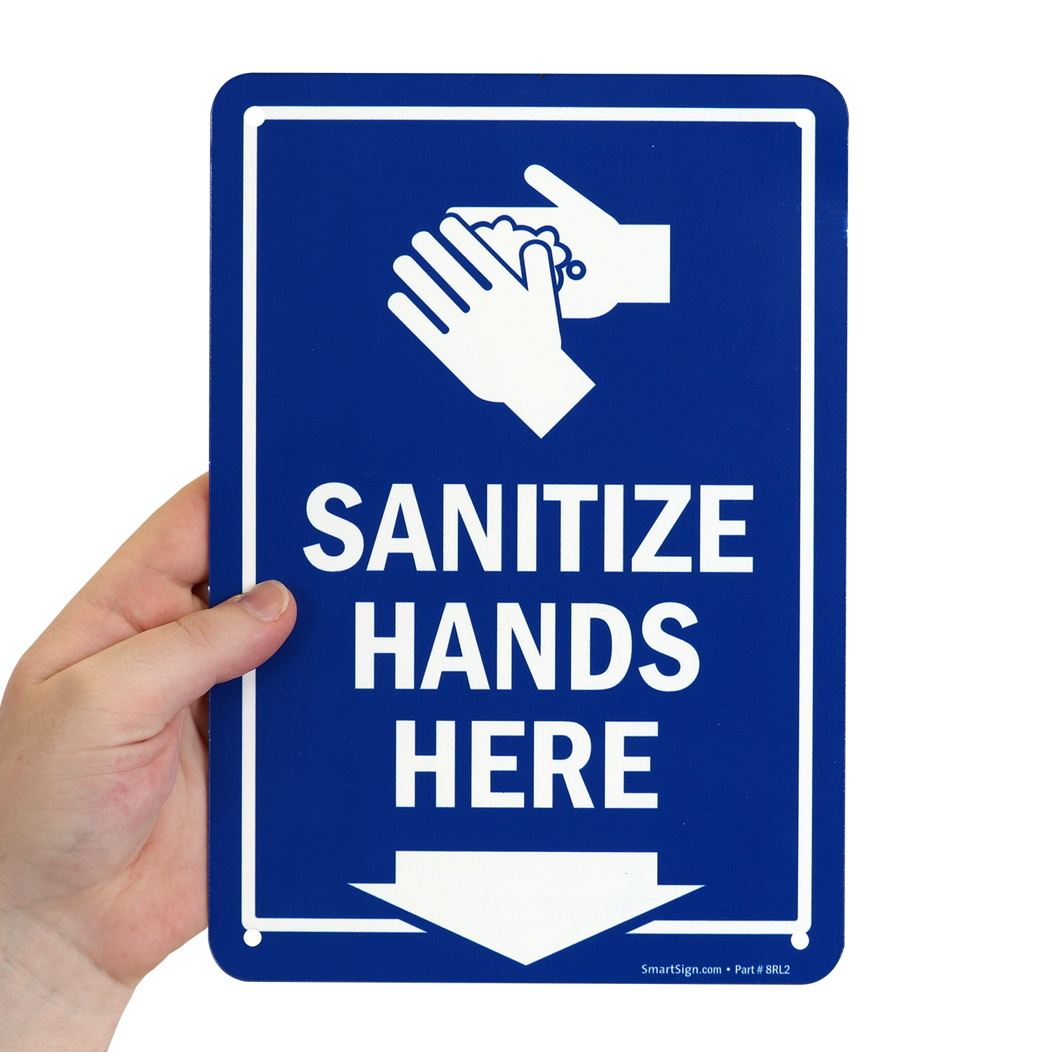 Stop germs and infections in their tracks! Post this 'Sanitize Hands Here' Sign help everyone locate hand sanitizer in your facility.