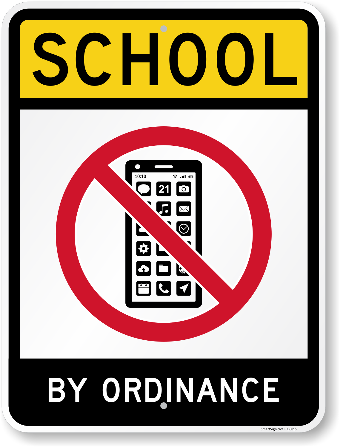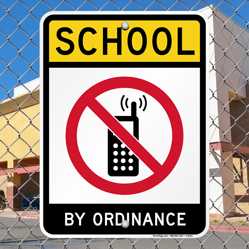 No Cell Phone Sign: School, By Ordinance With No Cell Phone Graphic K-0015 Learn More...