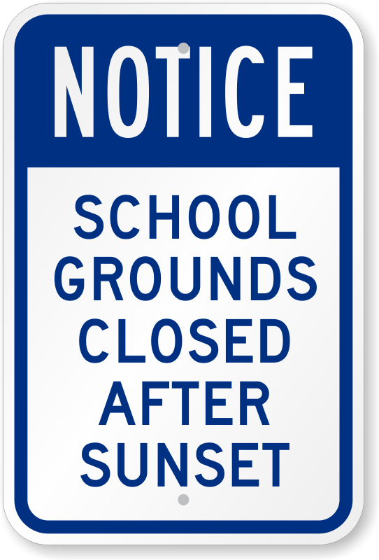 Notice Sign: School Grounds Closed After Sunset K-0533 Learn More...