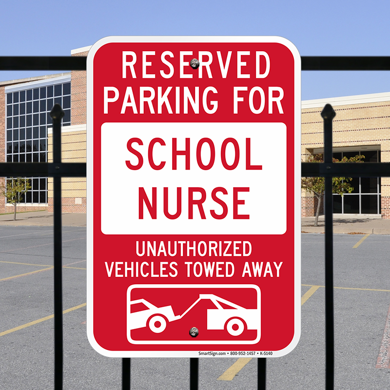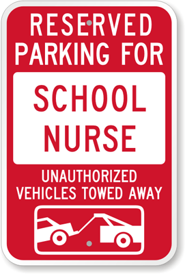 Tow Away Sign: Reserved Parking For School Nurse : Unauthorized Vehicles Towed Away K-5140 Learn More...