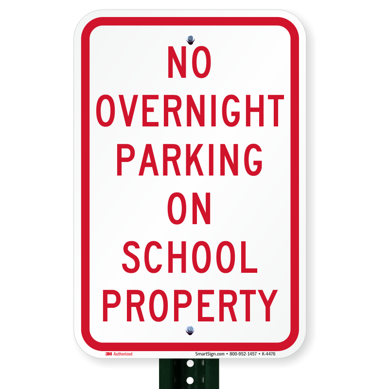 Parking Sign: No Overnight Parking On School Property K-4476 Learn More...