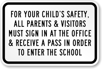 School Sign: For Your Child's Safety, Sign In At The Office K-4425 Learn More...