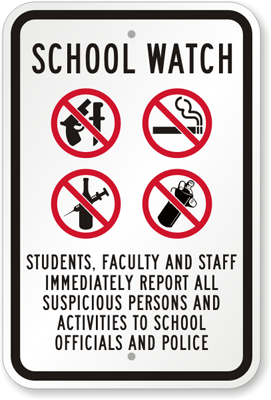 School Security Sign: School Watch - Students, Faculty And Staff Immediately Report All Suspicious Persons And Activities To School Officials And Police K-7443