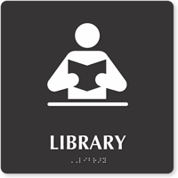 - Signs have Grade 2 Braille (with domed dots). Symbols are over 6" high.