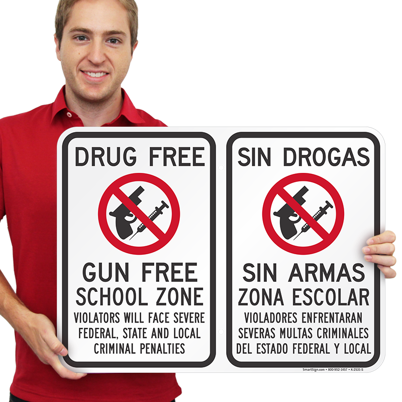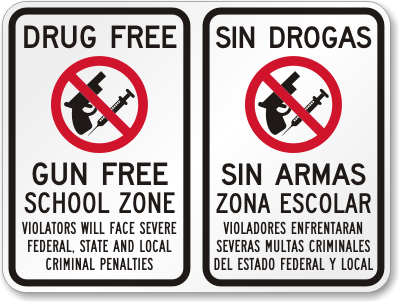Bilingual Drug Free School Sign: Drug Free, Gun Free School Zone / Sin Drogas Sin Armas Zona Escolar (English/Spanish) K-2531-S Learn More...