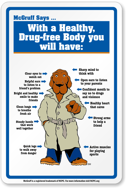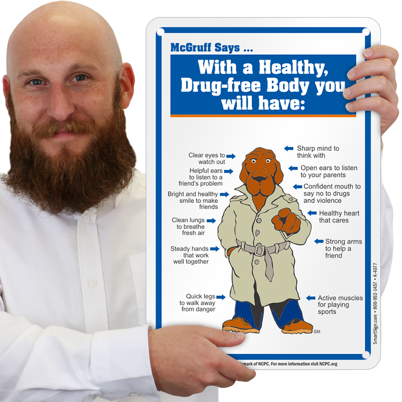 McGruff No Drugs Sign: With A Healthy, Drug-Free Body You Will Have Sharp Mind To Think With K-4077 Learn More...