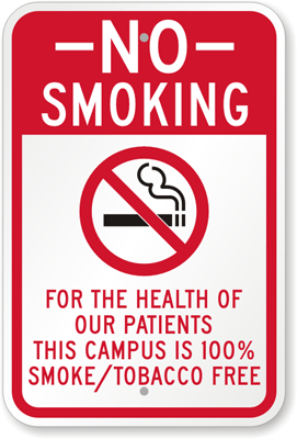 Tobacco Free School Sign: No Smoking - For The Health Of Our Patients This Campus Is 100% Smoke/Tobacco Free K-9852