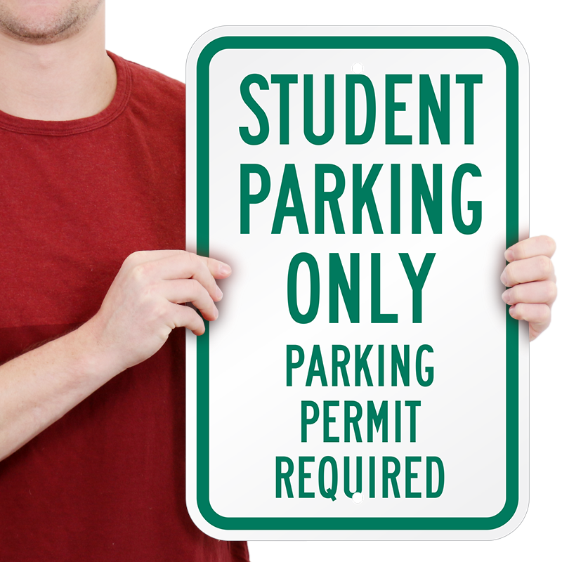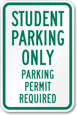 School Reserved Parking Permit Requirement Sign: Student Parking Only, Parking Permit Required Learn More...