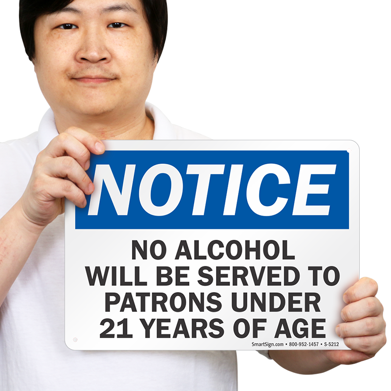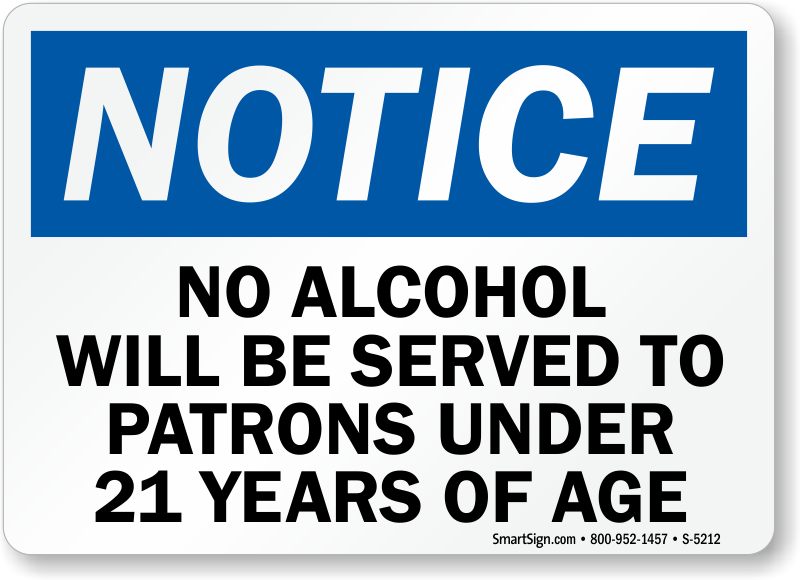 No Alcoholic Beverages Allowed Sign: Notice - No Alcohol Will Be Served To Patrons Under 21 Years of Age S-5212