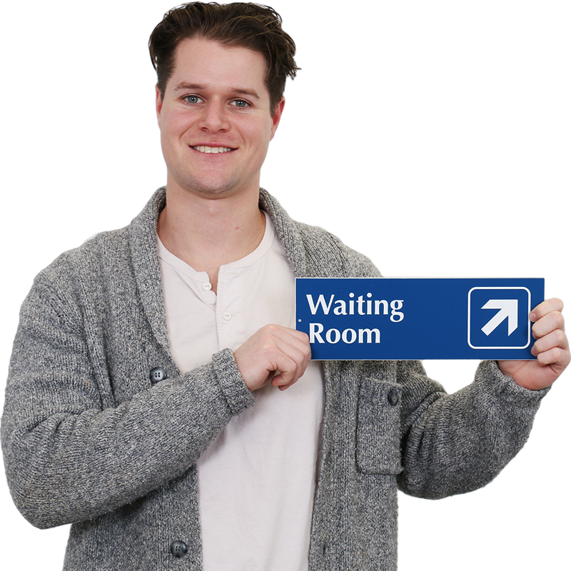 Select-a-Color Engraved Sign: Waiting Room (with Top Right Arrow) SE-2841-TR