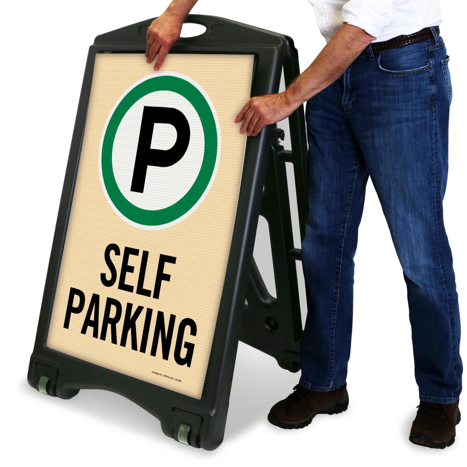 Use this A-frame portable sidewalk sign kit to let visitors know about the self parking facility in your lot.