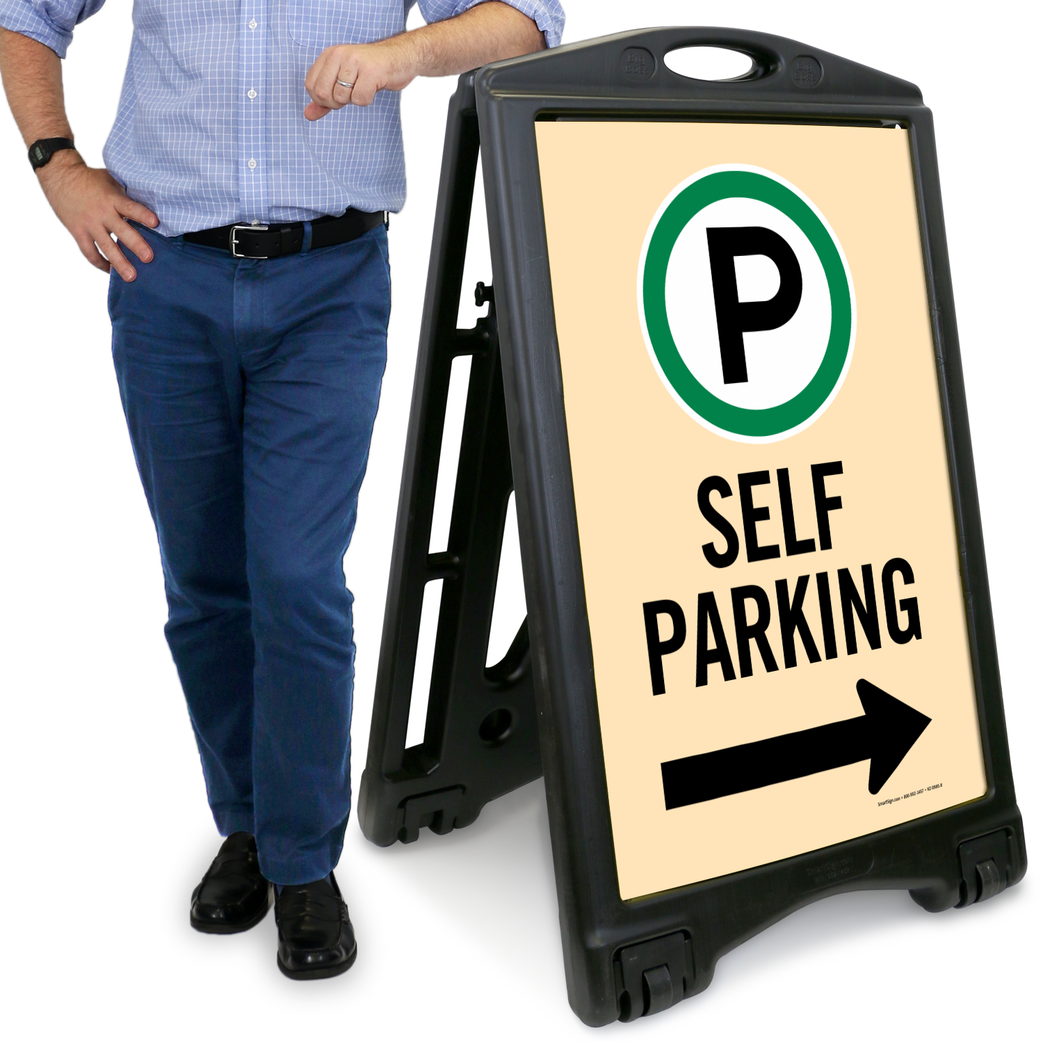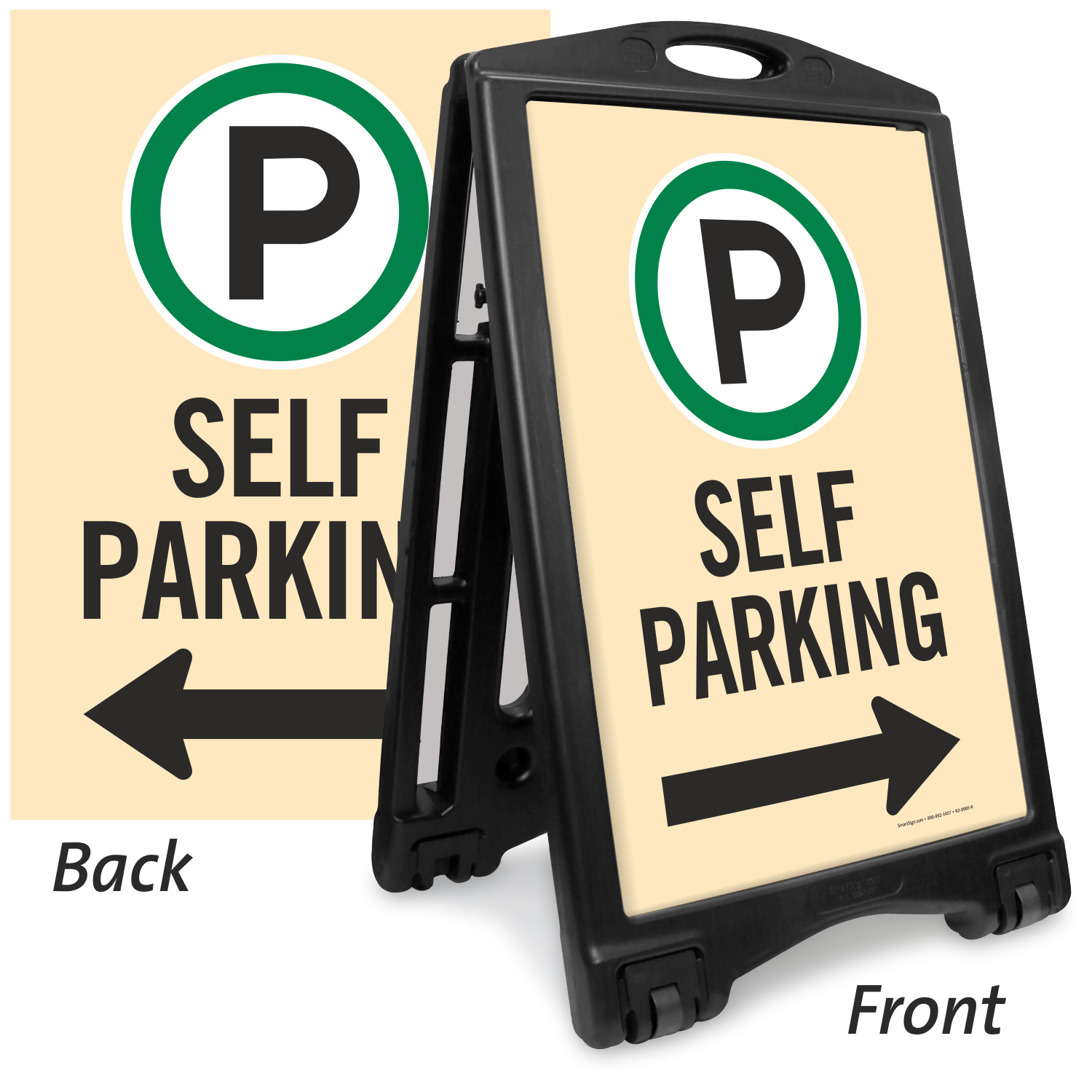 Inform patrons about the self parking facility on your premises with this portable A-frame sidewalk sign kit.