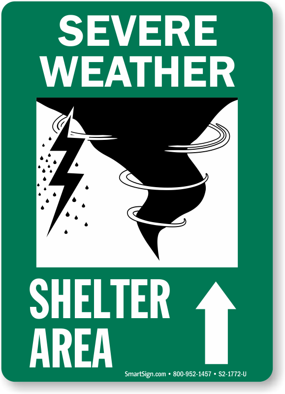Shelter Area Sign: Severe Weather Shelter Area With Ahead Arrow S2-1772-U