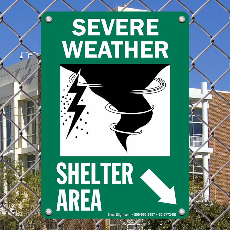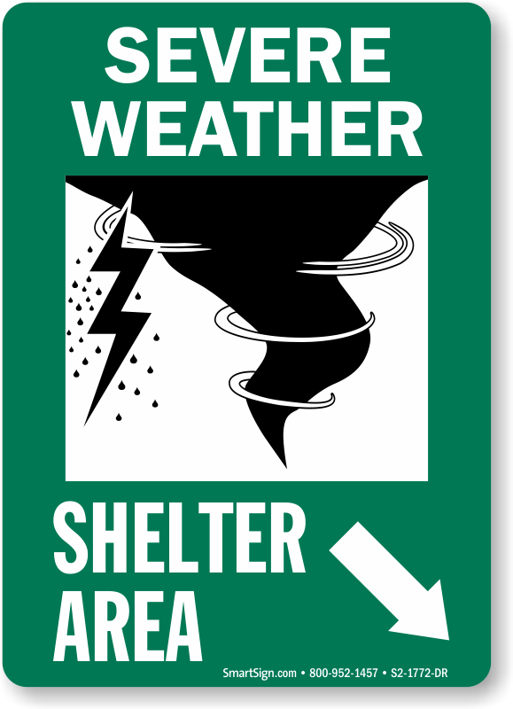 Shelter Area Sign: Severe Weather Shelter Area With Down Right Arrow S2-1772-DR