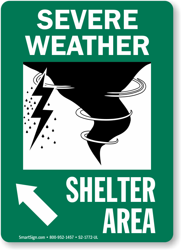 Shelter Area Sign: Severe Weather Shelter Area With Upper Left Arrow S2-1772-UL