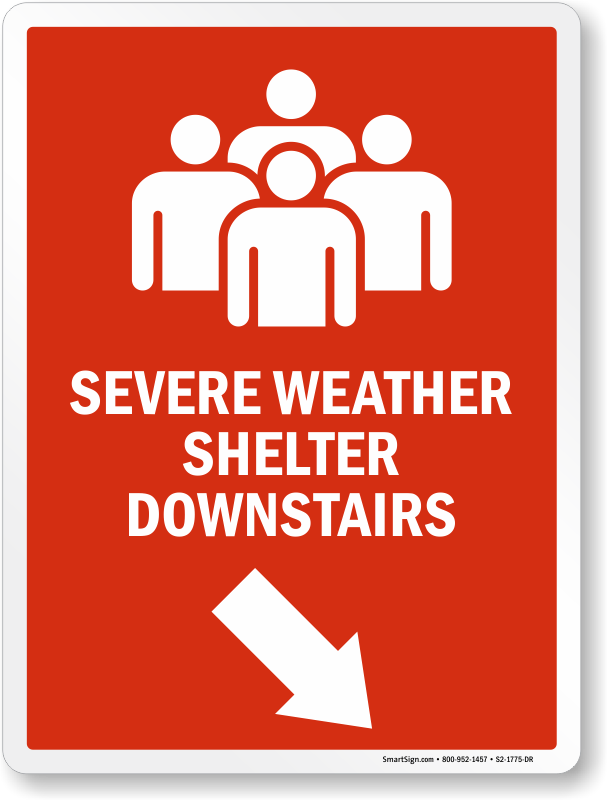 Shelter Area Sign: Severe Weather Shelter Downstairs With Right Down Arrow S2-1775-DR