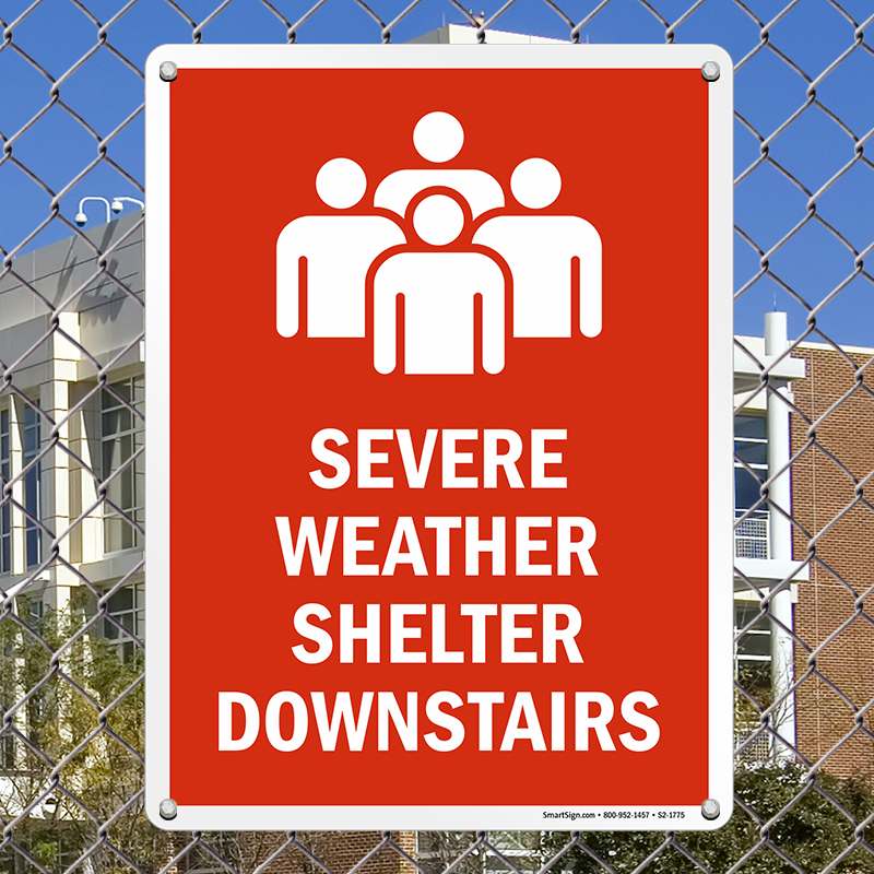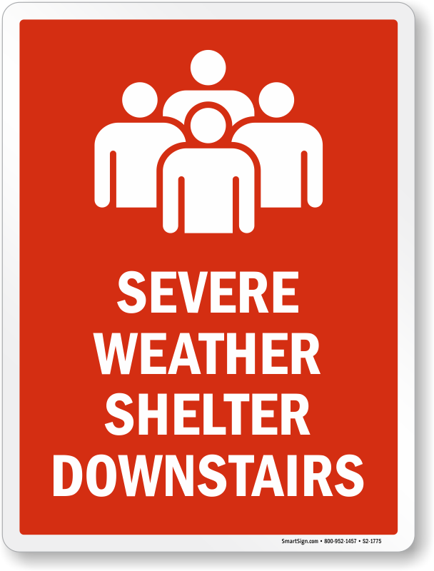 Shelter Area Sign: Severe Weather Shelter Downstairs S2-1775