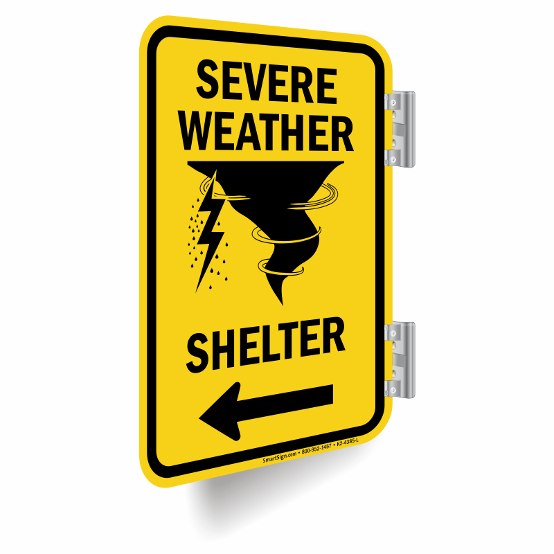 Double-Sided Sign: Severe Weather Shelter With Left Arrow K2-4385-L