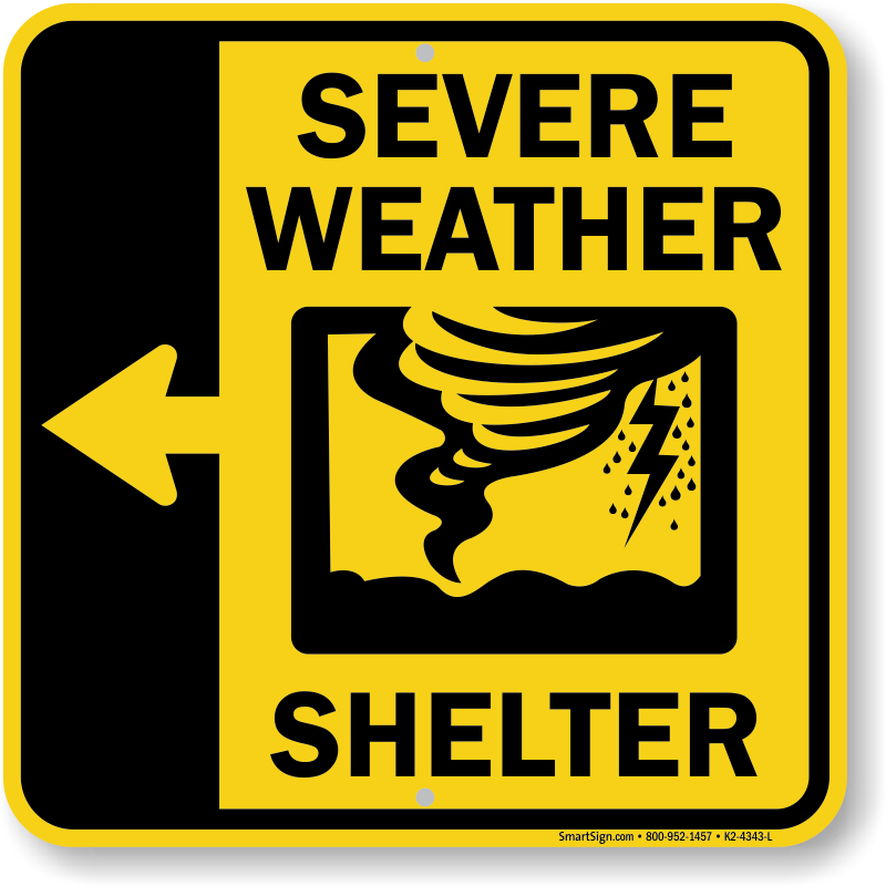 Shelter Area Sign: Severe Weather Shelter With Left Arrow K2-4343-L