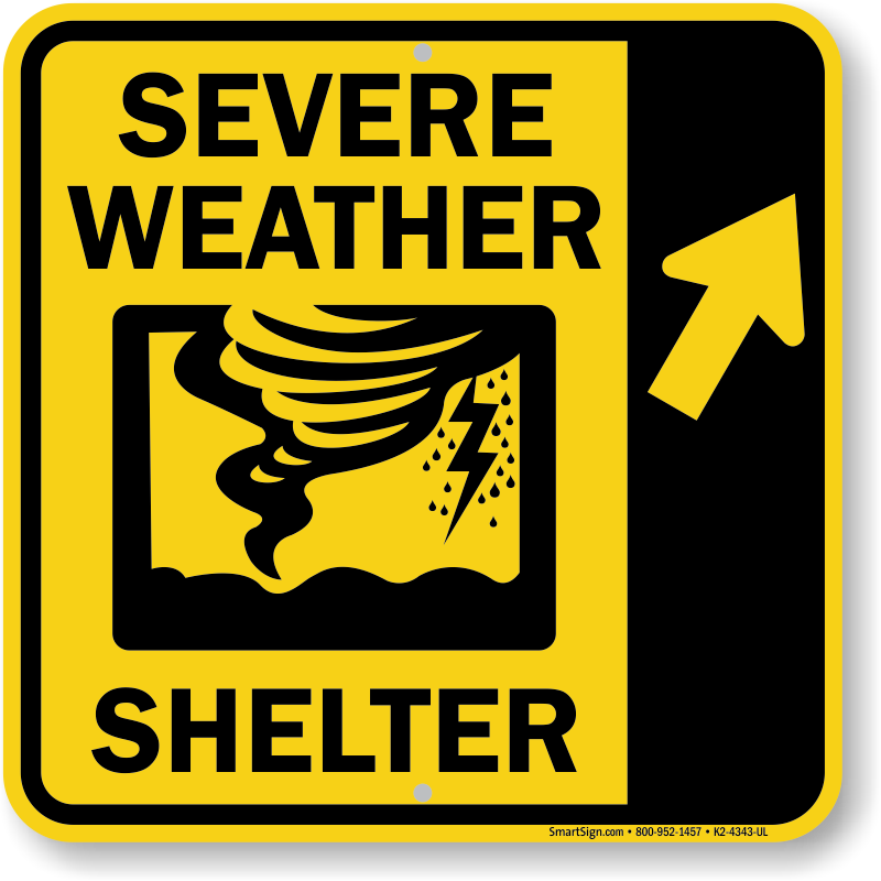 Shelter Area Sign: Severe Weather Shelter With Upper Right Arrow K2-4343-UR
