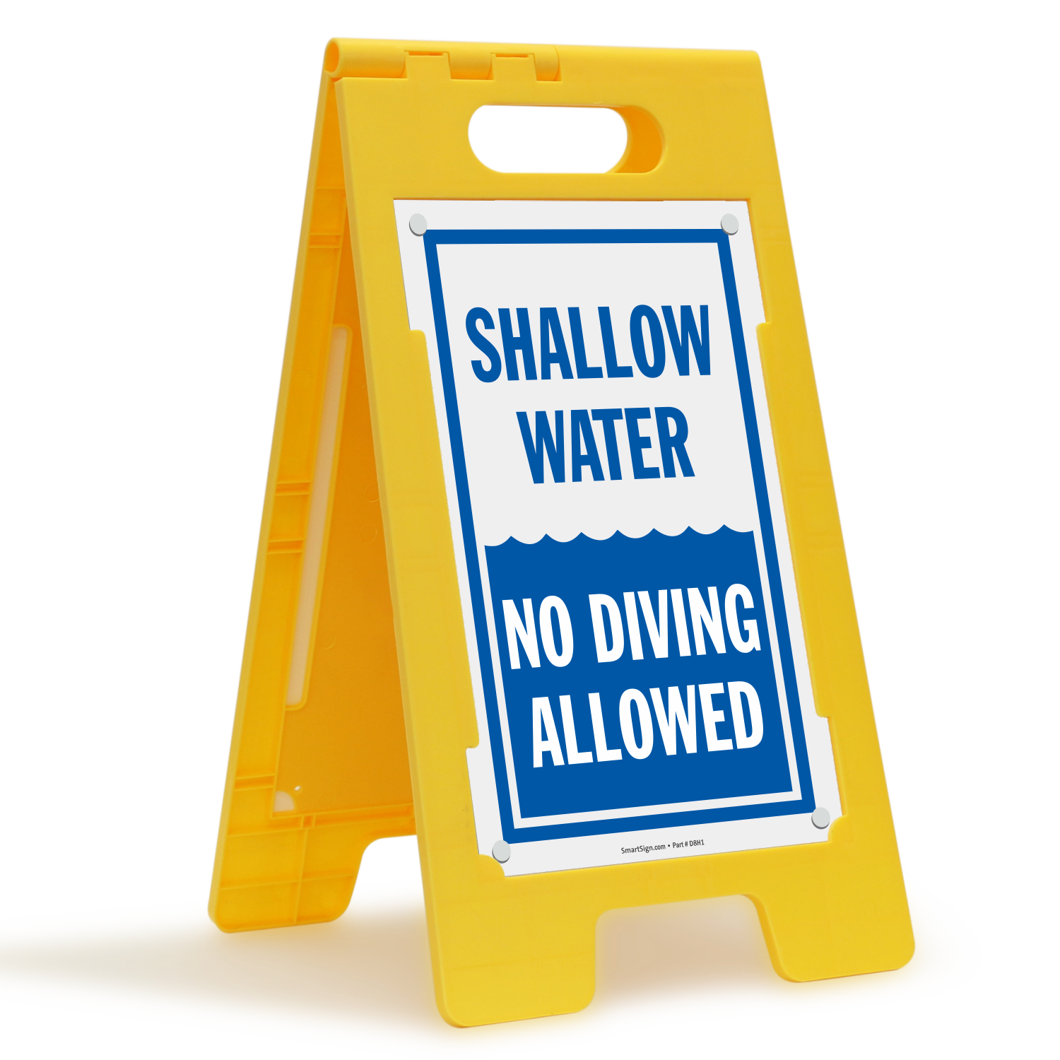 Pool rules should be stated clearly. Use this 'Shallow Water - No Diving Allowed' free standing floor sign and make sure no one dives in pool.