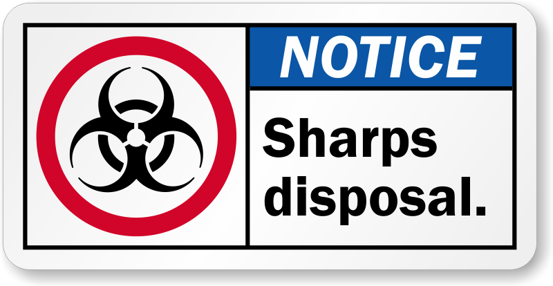 Warning in advance about a hazardous area can save an accident. Bring sharps' disposal containers and bags into notice by applying this ANSI Notice label.