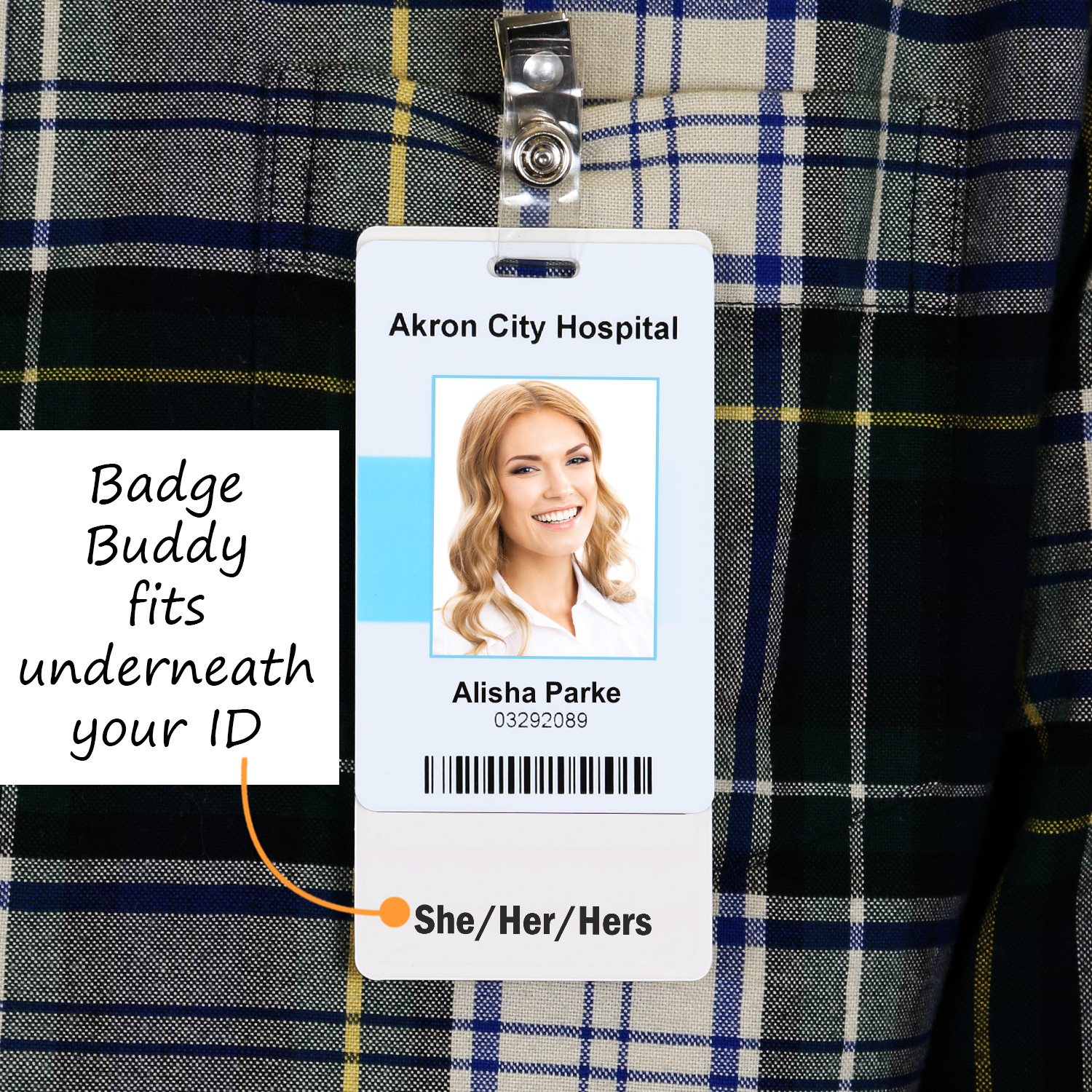 Size: 4.5" x 2.125" Material Type: ToughBadge Pronoun Tag, 1-Sided Verified PurchaseGreat Product and Service!