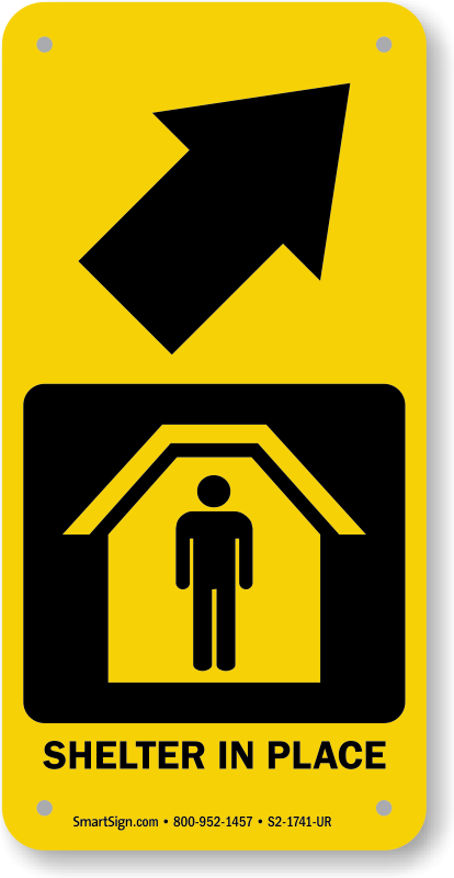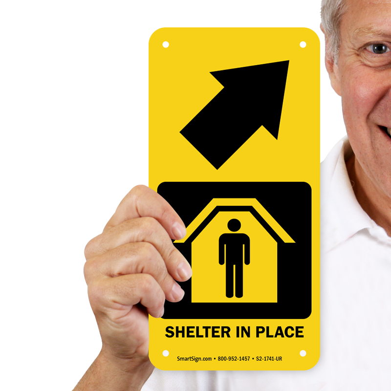 Shelter Area Sign: Shelter In Place With Upper Right Arrow S2-1741-UR