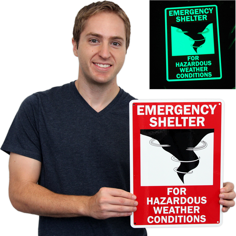 Make sure your fire safety signs are in order. Use a "emergency shelter for hazardous weather conditions" sign. Be prepared for emergency situations.