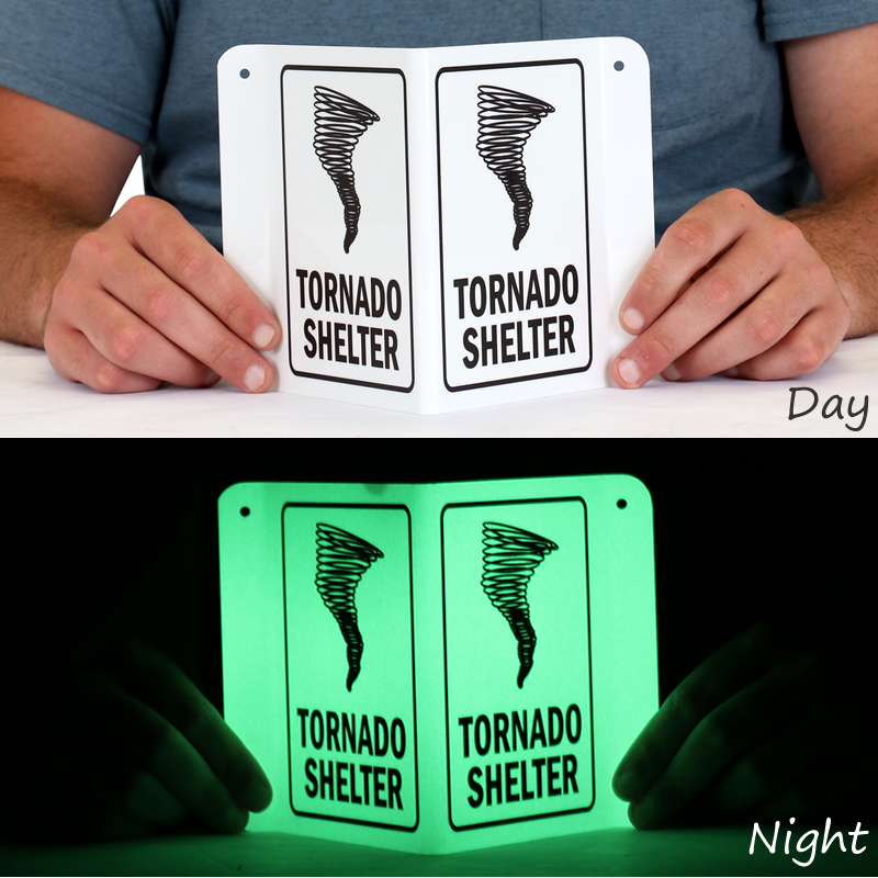Glow-in-Dark Projecting Emergency Sign, 6" x 5": Tornado Shelter (with graphic) S-4672