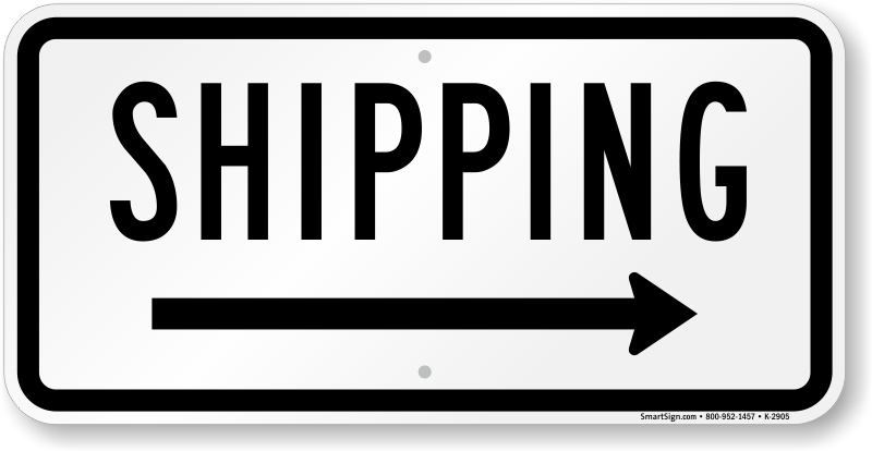 Parking Lot Sign: Shipping (With Right Arrow) Learn More...