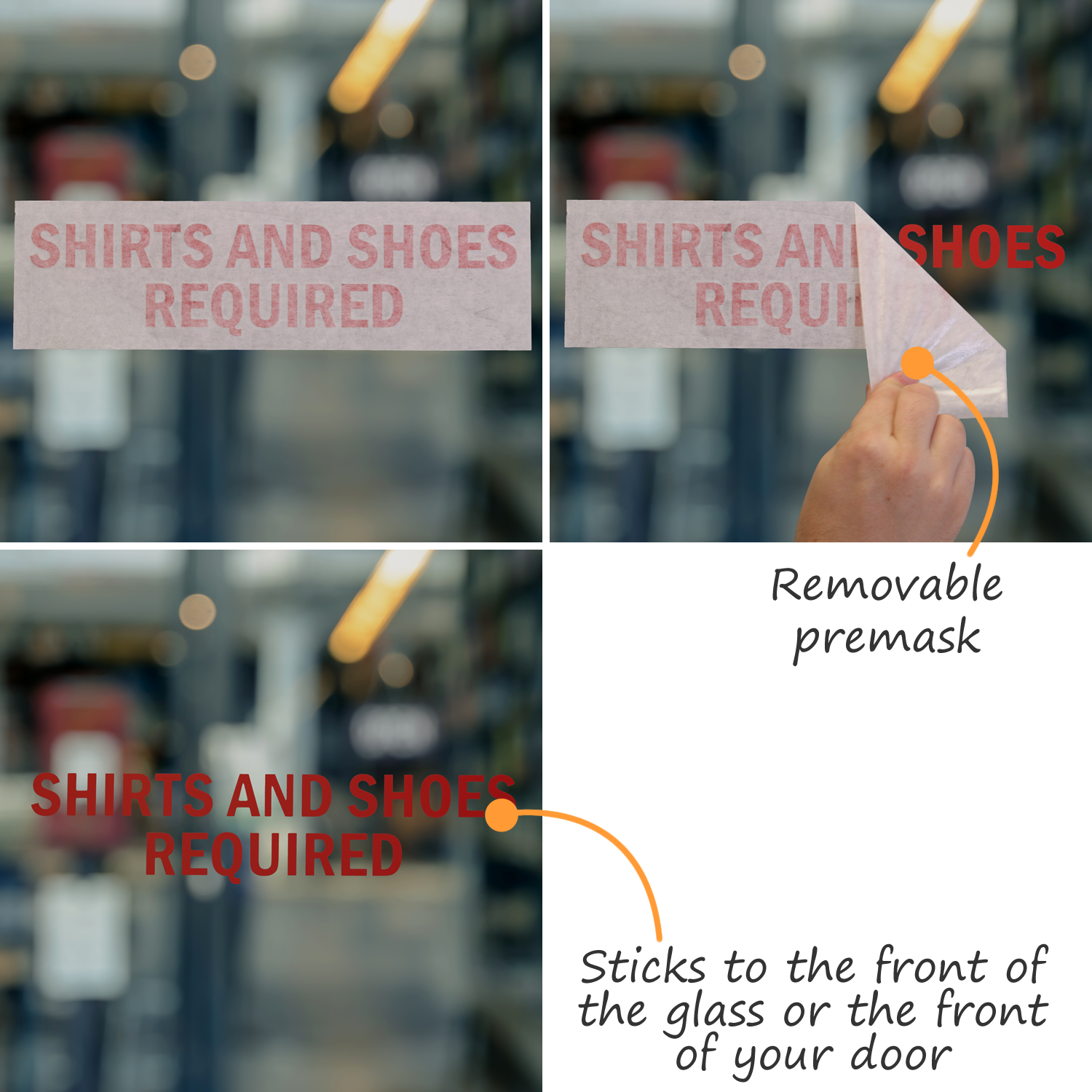 Vinyl Die Cut Glass Window Decal: Shirt and Shoes Required LB-1816