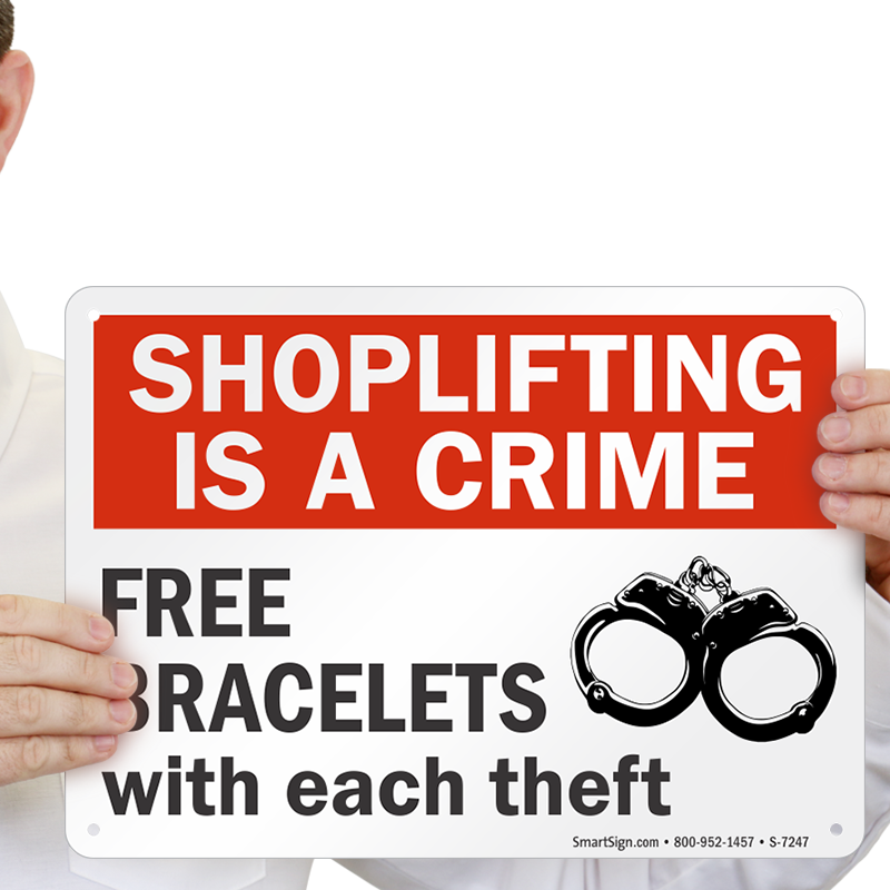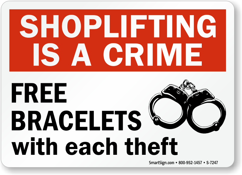 Shoplifting Sign: Shoplifting Is A Crime, Free Bracelets With Each Theft S-7247