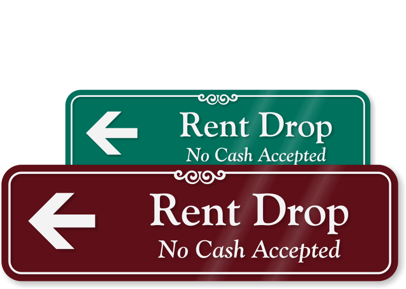 ShowCase™ Wall Sign: Rent Drop No Cash Accepted with Left Arrow SE-1663-L Learn More...