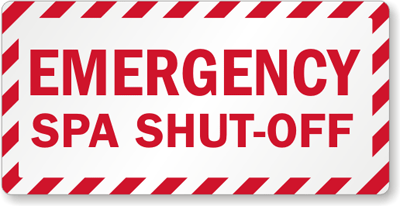 Label your emergency spa shut-off valve with an Emergency Spa Shut-Off sign or label.