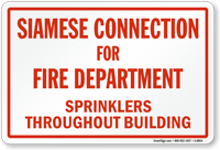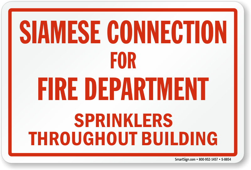 Siamese Connection Sign: Siamese Connection For Fire Department, Sprinklers Throughout Building S-8854 Learn More...