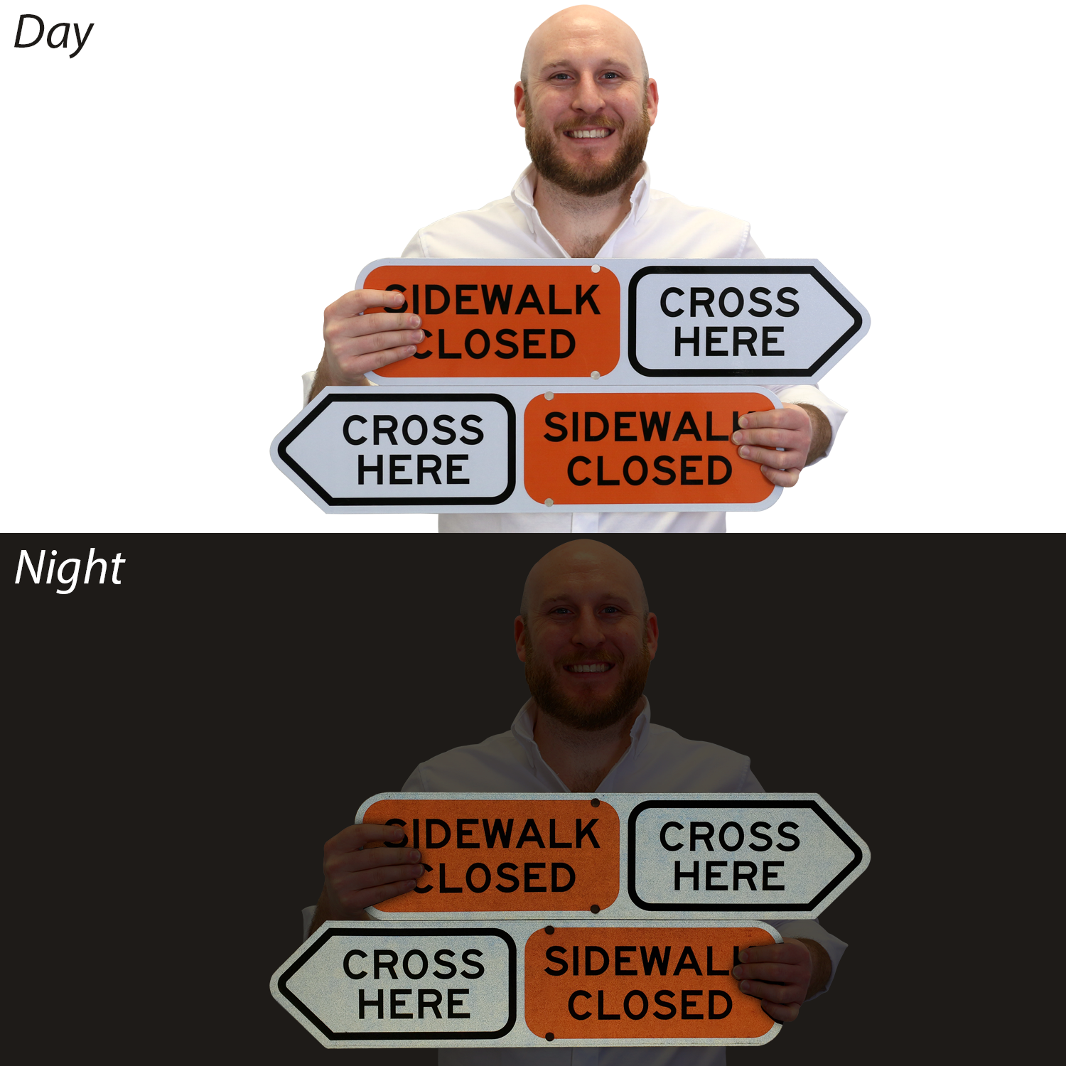 Sidewalk Sign: Sidewalk Closed, Cross Here K2-4928 Learn More...